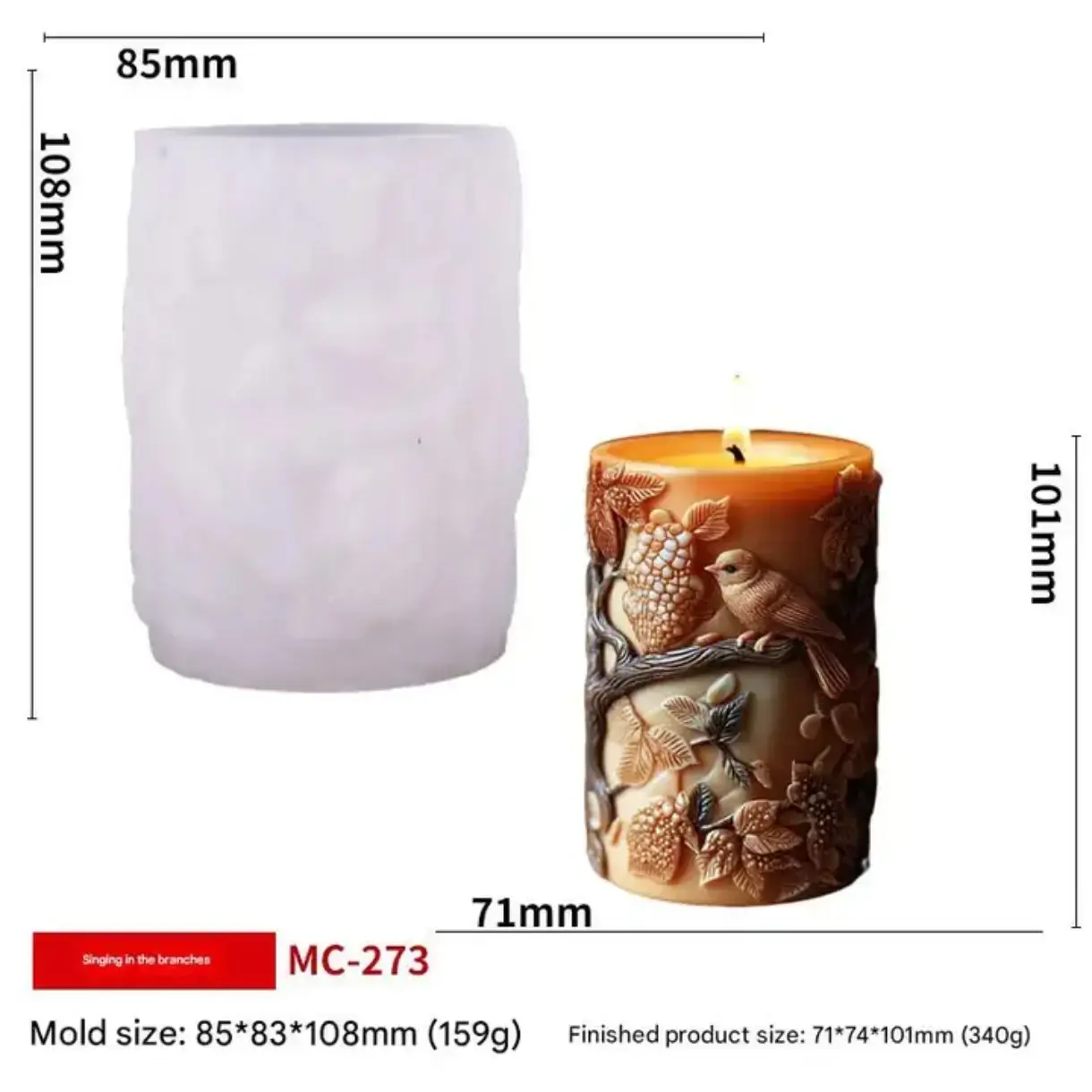 Birds pillar candle mold A